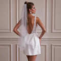 New Mini Wedding Dresses Sweetheart Straps Beads Sequins Backless Satin Bride Dress Above Knee Women Party Garden Beach Gowns