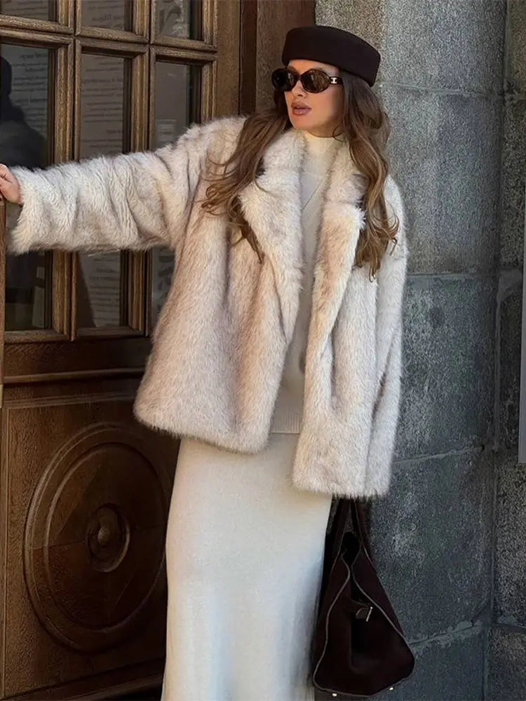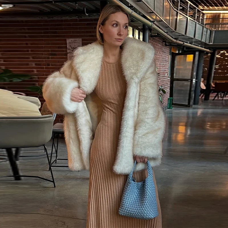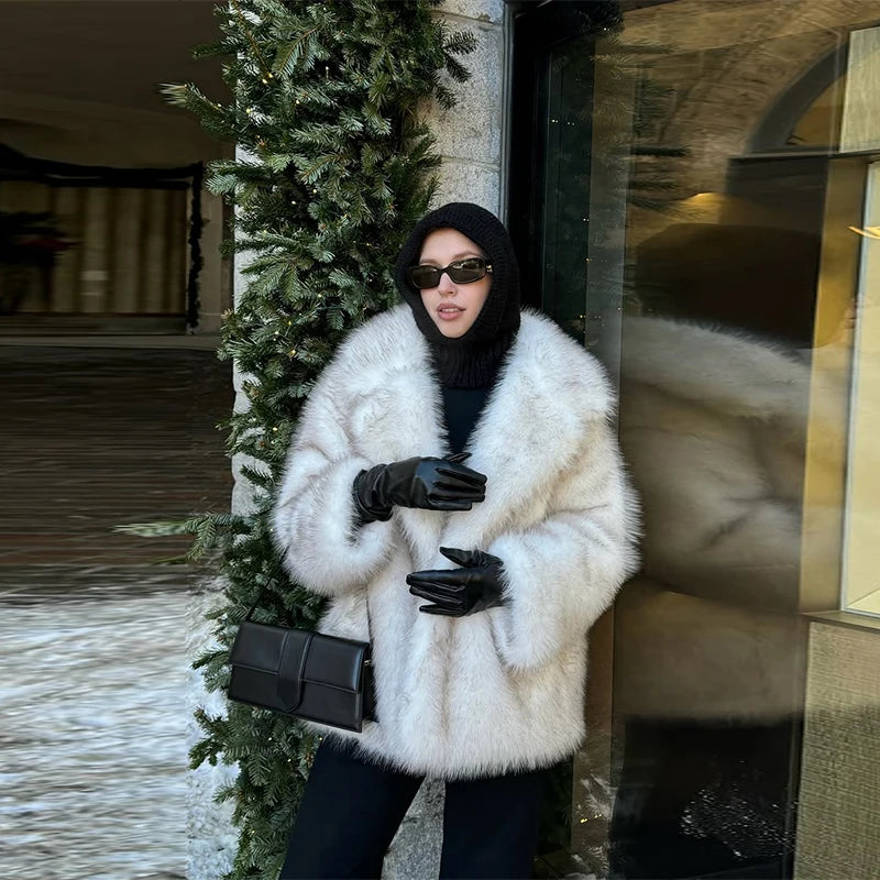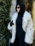 Oversized Tip-dyed Lapel Furry Faux Fur Coats Women Elegant Turn-down Collar Long Sleeve Coat Designer New Winter Lady Outerwear