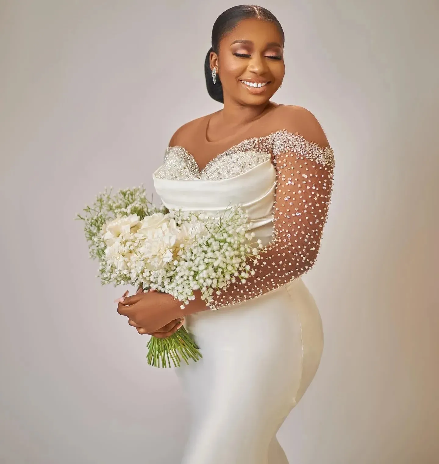Plus Size Ivory Mermaid Wedding Dresses 2026 Sheer Neck Beaded Crystals Detachable Train Bridal Gowns Dress Vestidos De Noiva
