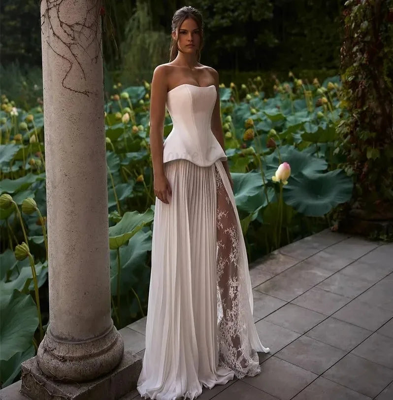 Sexy A-line Wedding Dresses 2026 Strapless Side Split Lace Applique Bridal Party Gowns Dress Vestidos De Noiva