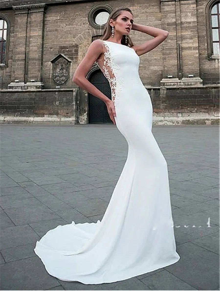 Sexy Mermaid Wedding Dress Bateau Neck Cutout Side Open Back Soft Satin Bridal Gown Elegant Bridal Dress Brides Vestido De Noiva