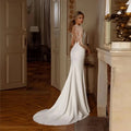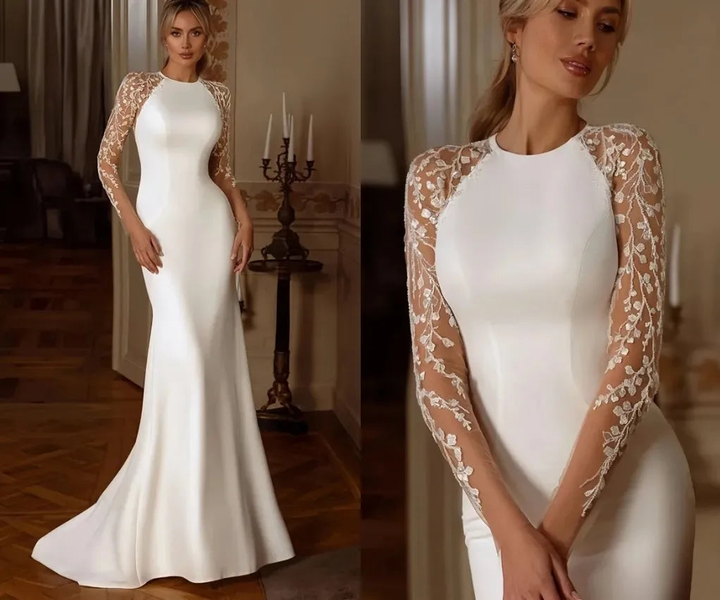 Sexy Mermaid Wedding Dress Sheer Neck Lace Appliques Illusion Buttons Back Satin Bride Bridal Gowns Vestidos De Noiva
