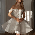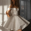 Sexy Mini Short Sequins Wedding Dress Lace Decal Sweetheart Garden A-line Off Shoulder Bridal Bride Party Grown Boho Vestido
