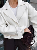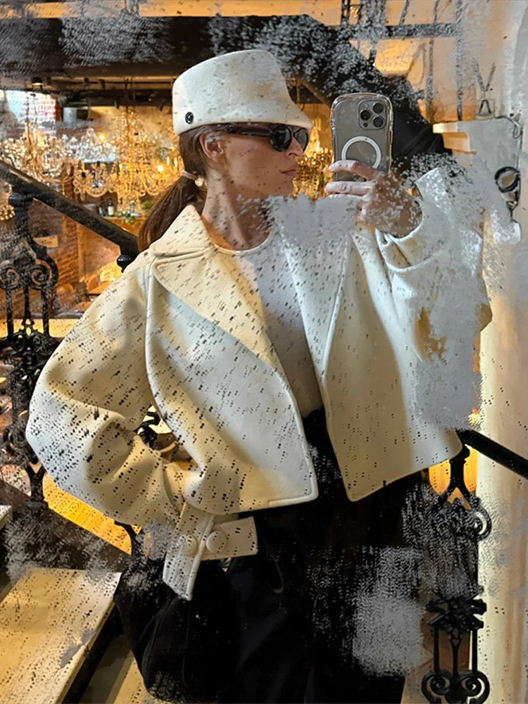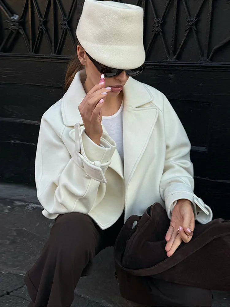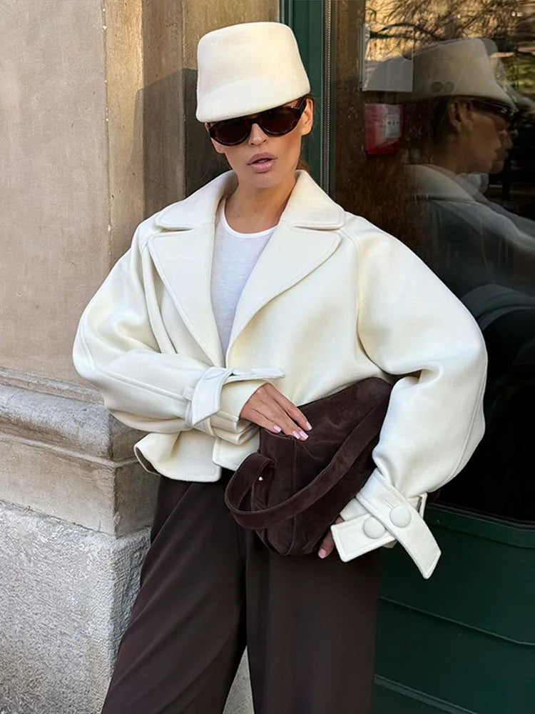 Short Woolen Jacket With Shoulder Sleeves Women Elegant Turn-down Collar Long Sleeve Coats New Fashion Autumn Winter Ladies Tops