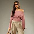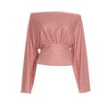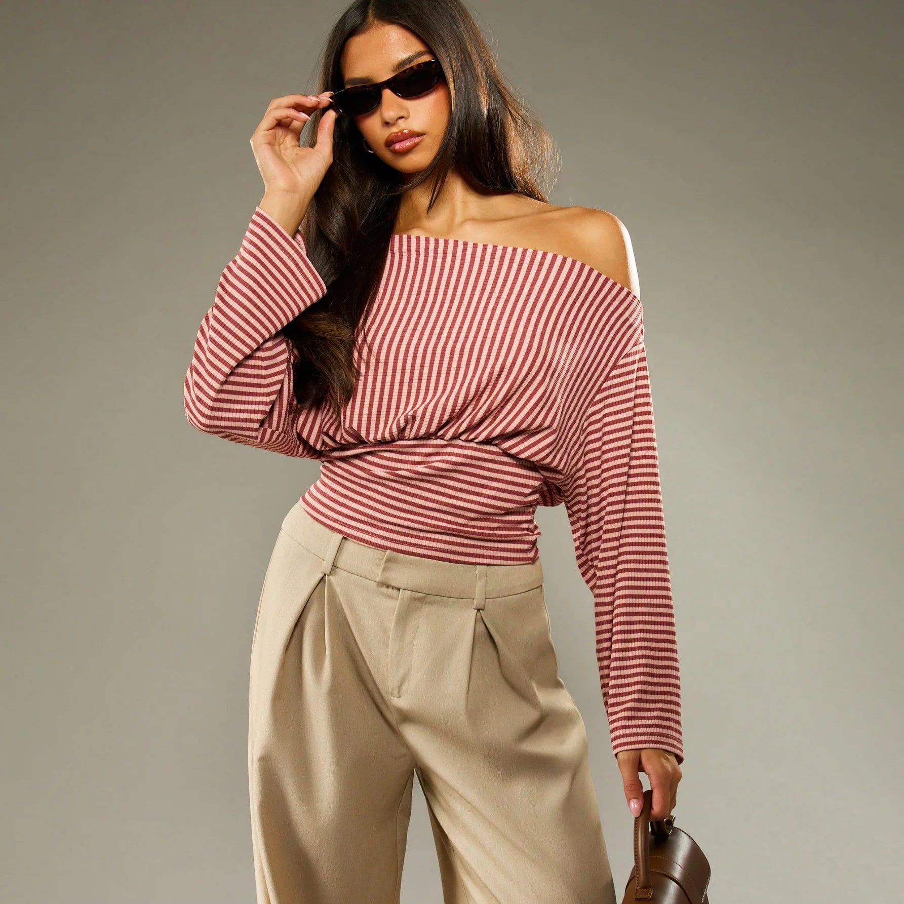 Slash Neck Loose Long Sleeve T Shirt Women Casual Fashion Red White Striped Base Tees Streetwear Crop Tops Female Y2K Clothes