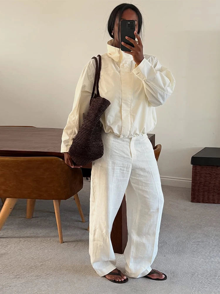 Stand Collar Drawstring Pilot Jackets Women Casual Long Sleeve Waist Cinching Zipper Pockets Coat New Autumn Chic Lady Outerwear