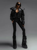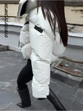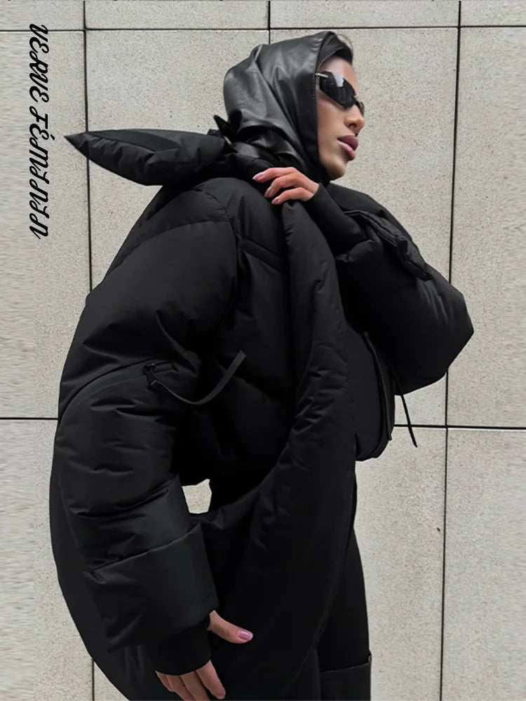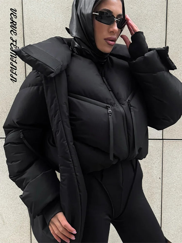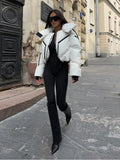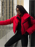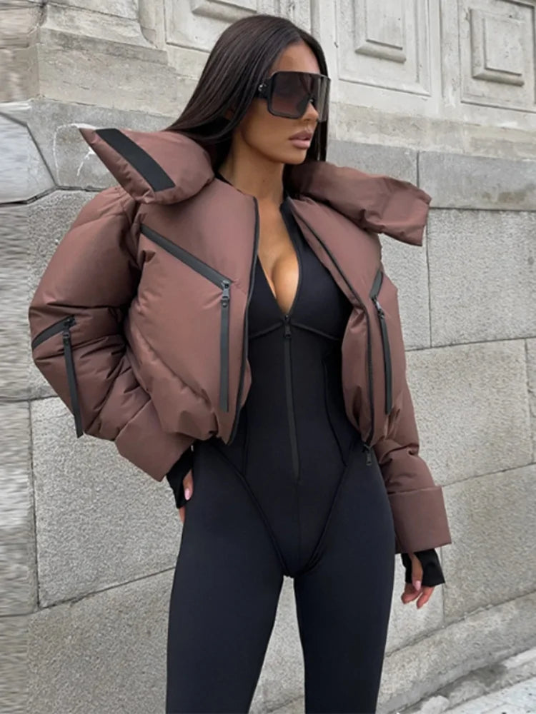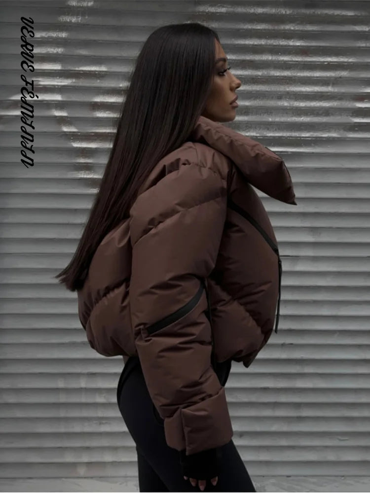 Stand Collar Panelled Short Padded Jacket Women Elegant Long Sleeve Loose Zipper Autumn Winter Coats Fashion Lady New Outerwears