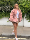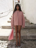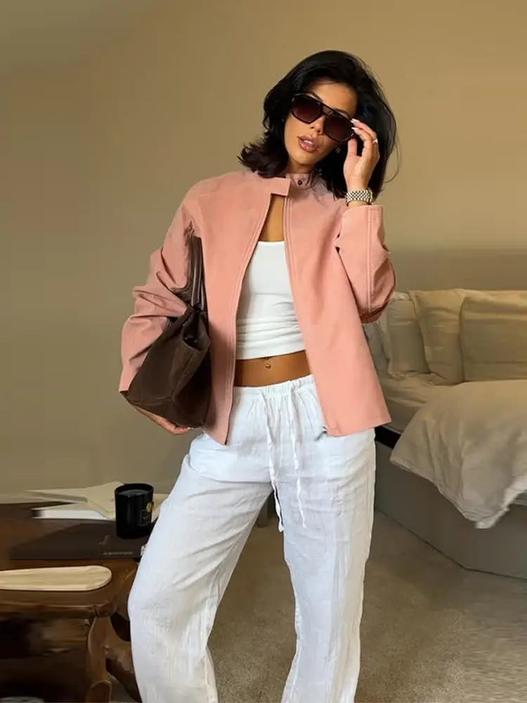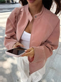 Strand Collar Long Sleeve Suede Jackets Women Elegant Solid Loose Fitting Zipper Coats Retro Y2K Early Autumn Commute Outerwear
