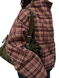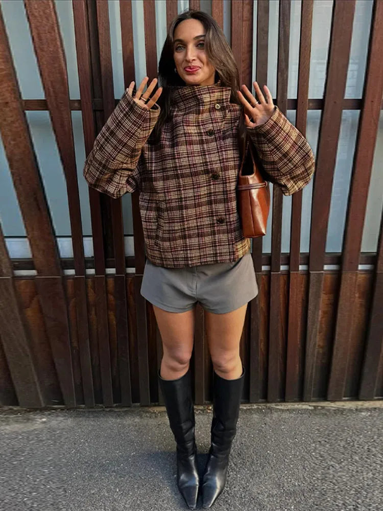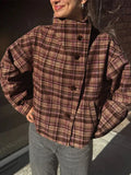 Street Plaid Loose Women Jacket Stand Collar Long Sleeve Slant Opening Single Breasted Coat Fashion Autumn Winter OfficeLady Top