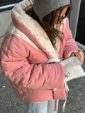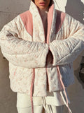 Street Printed Loose Women's Warm Coats Lapel Long Sleeve Lace Up Patchwork Quilted Jackets Fashion Ladies Winter Outerwear New