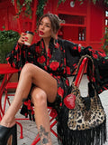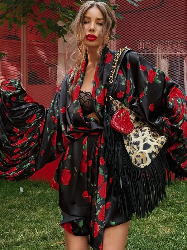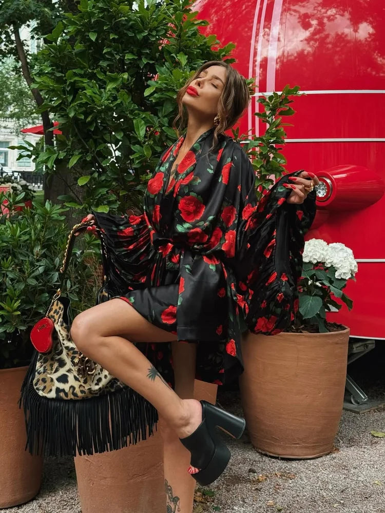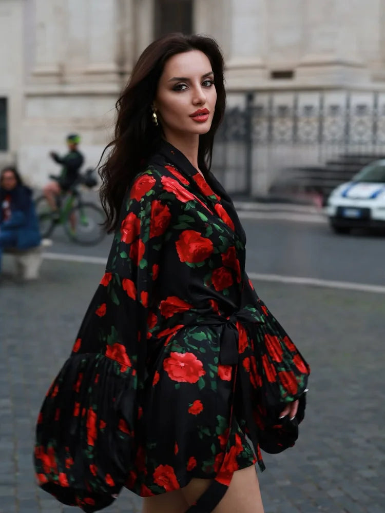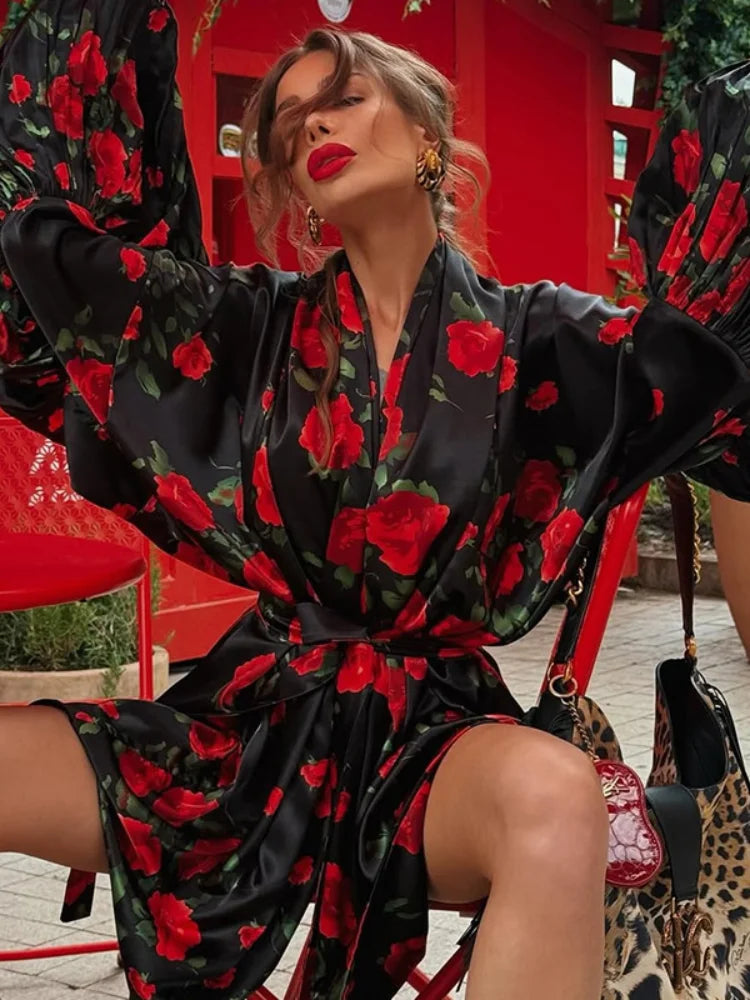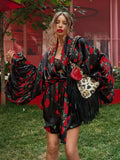 Street Printed Slim Women's Short Dress Turn-down Collar Lantern Full Sleeve Lace Up Slim Shirt Dresses Fashion Lady Streetwear