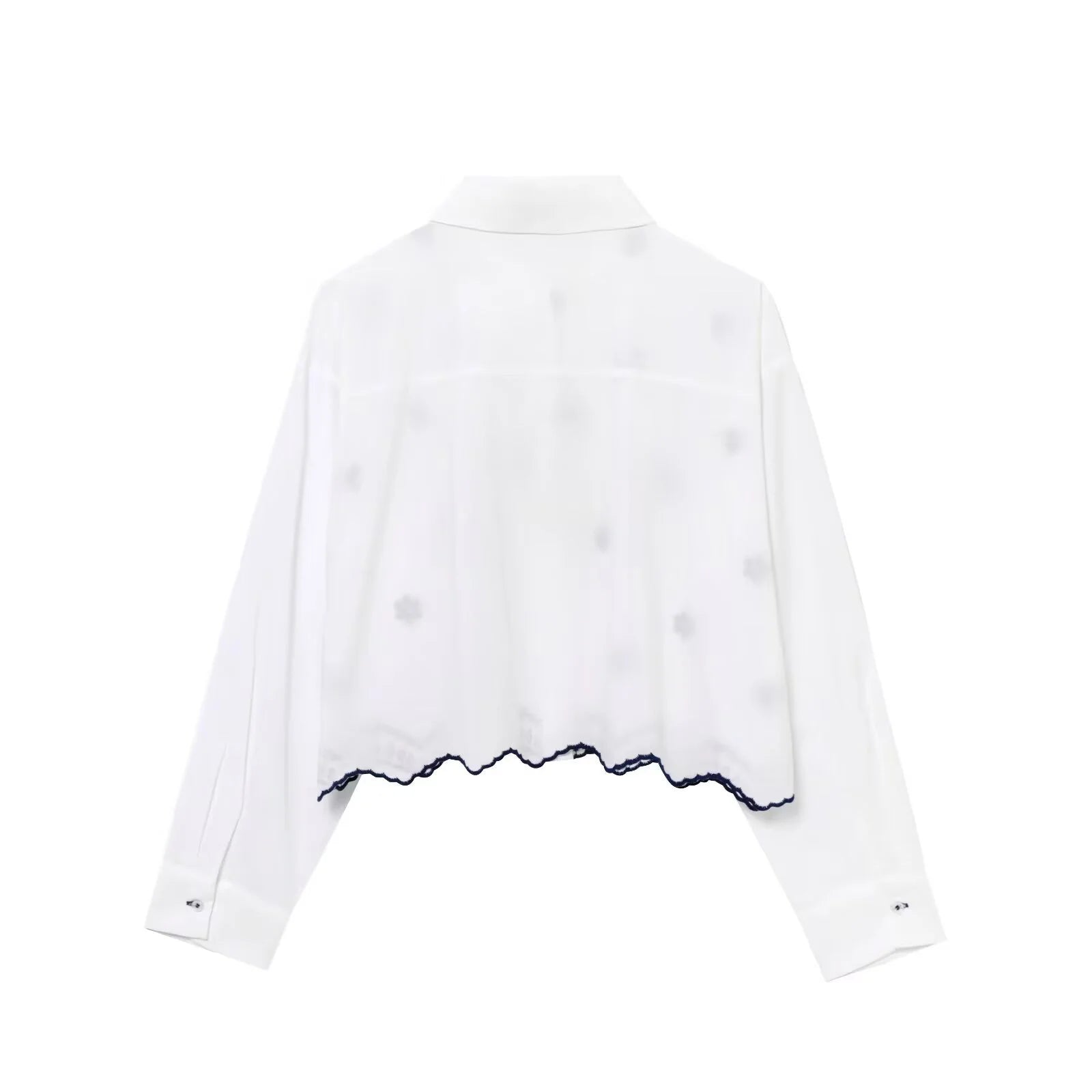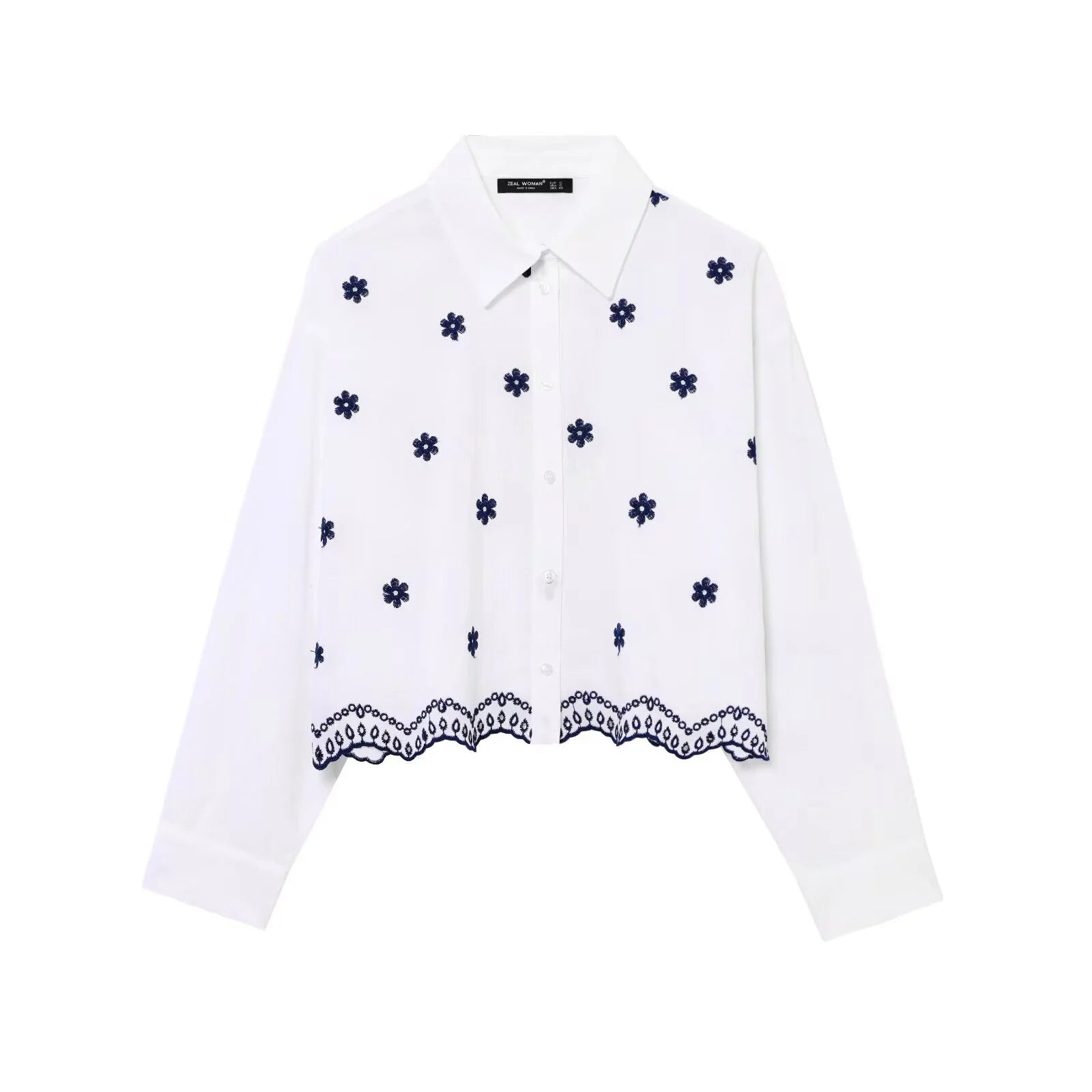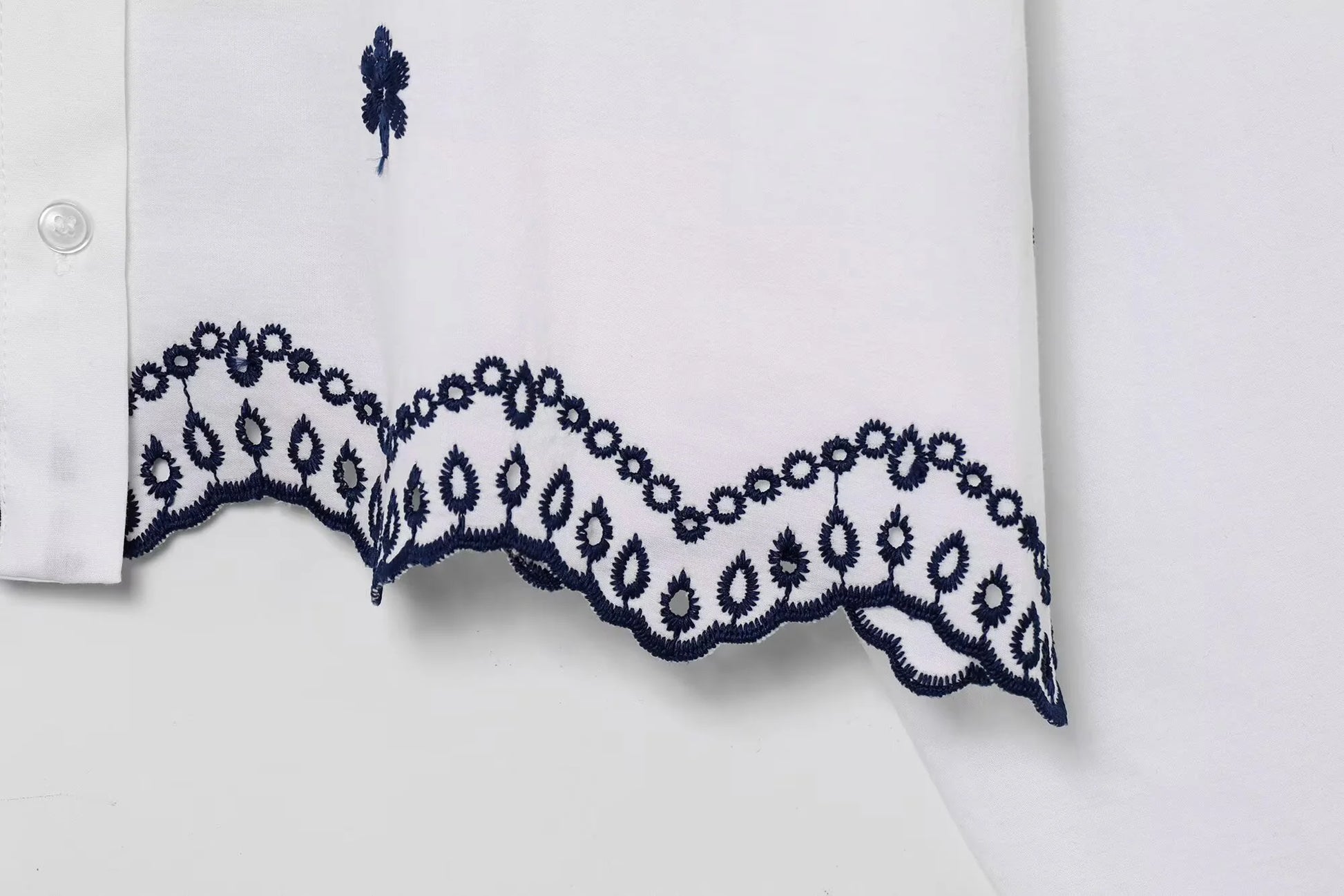 Summer New Women's Clothing Fashionable Temperament Casual Flower Embroidery Poplin Lapel Long Sleeved Shirt