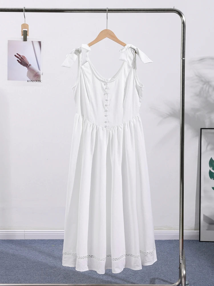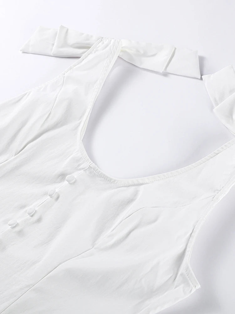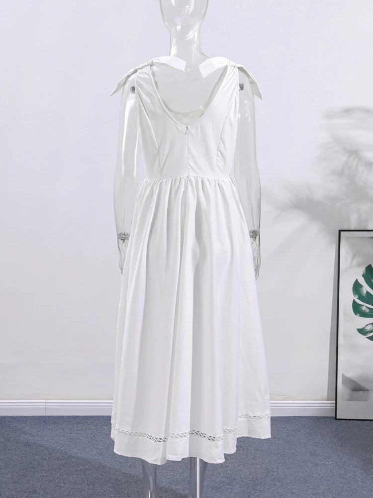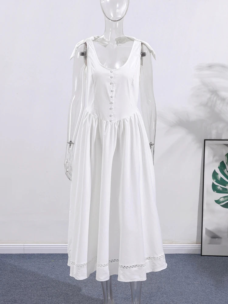 Sweet Solid Slim Women's Long Dress Bow Sleeveless Backless Waist Cinching Single Breasted Evening Dresses Fashion Lady Vestido