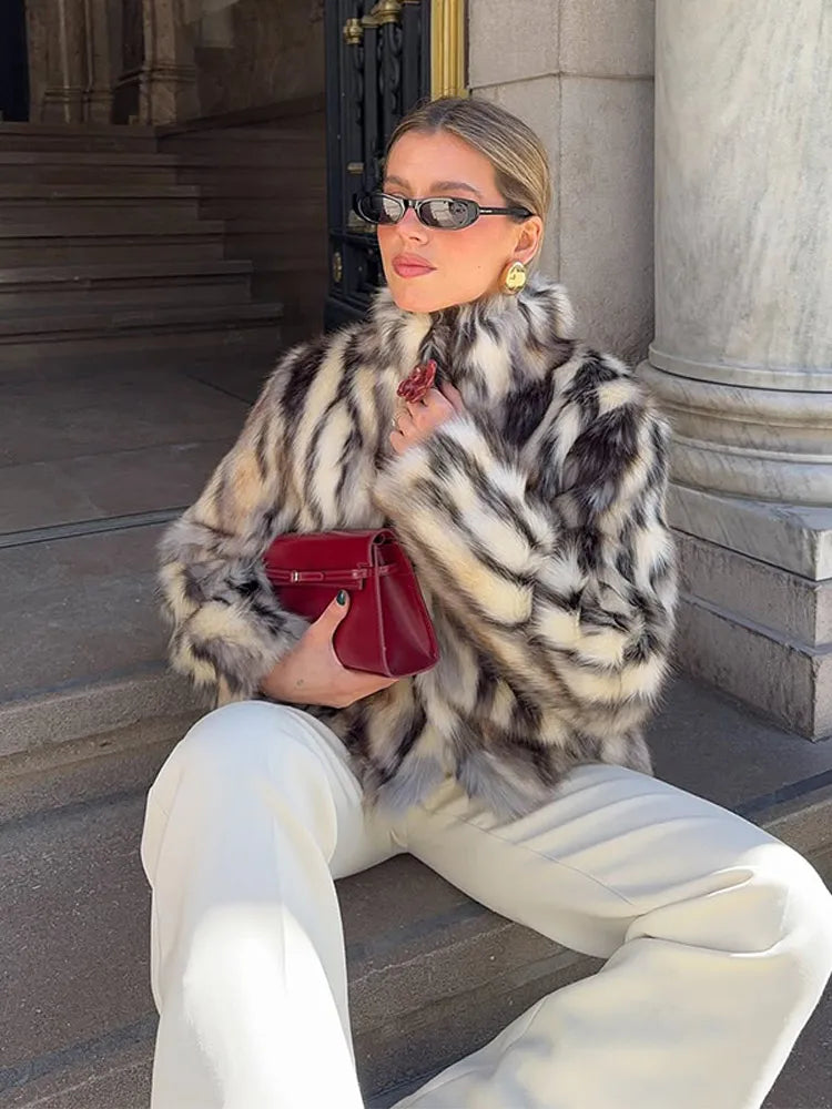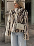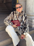Vintage Panelled Loose Women's Faux Fur Coat Stand Collar Long Sleeve Autumn Winter Furry Warm Coats New Casual Ladies Outerwear