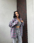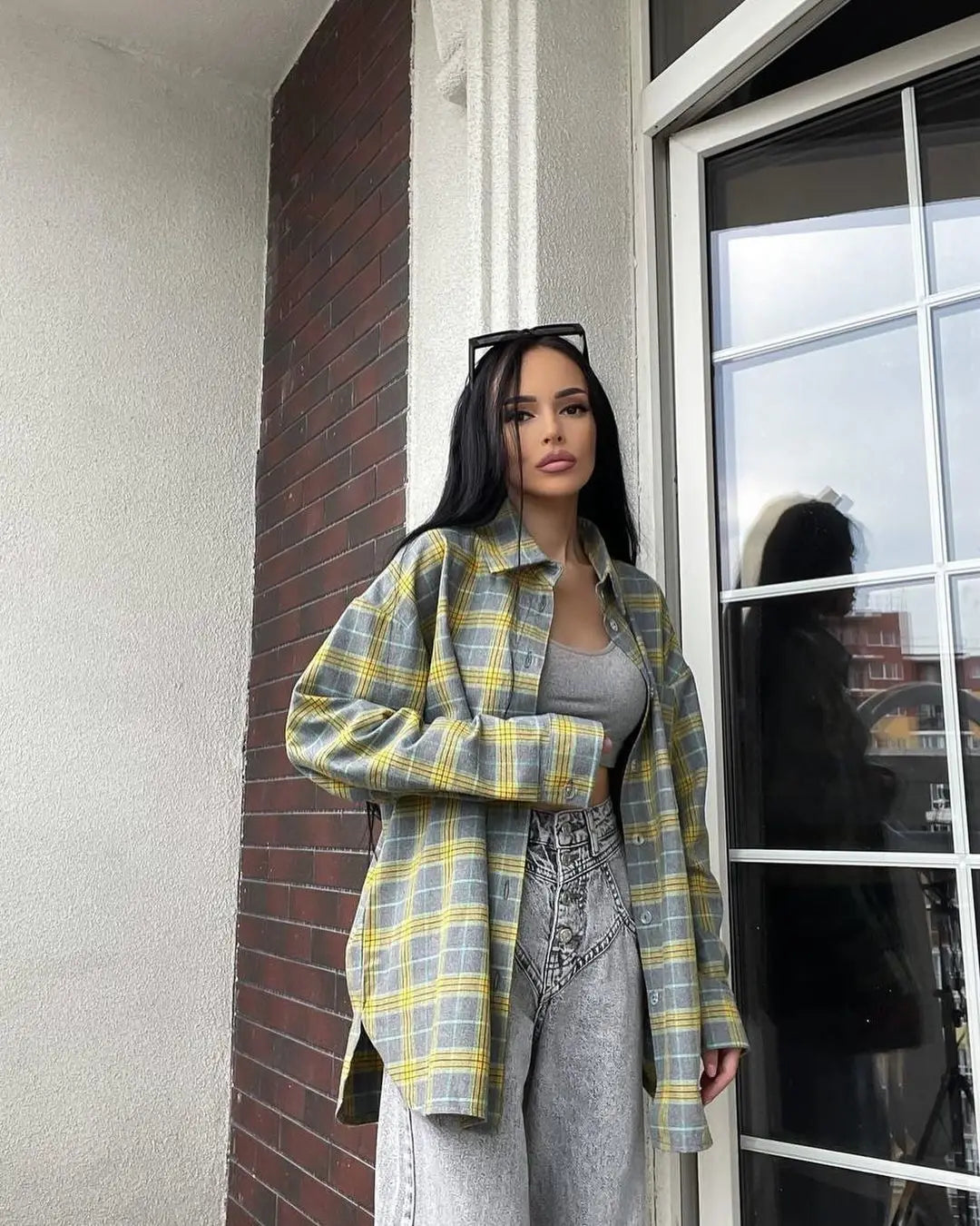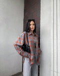 Vintage Plaid Loose Blouse Women Spring Summer Fashion Korean Lapel Single Breasted Shirt Y2K Clothes Long Sleeve Top Streetwear