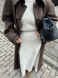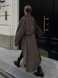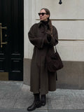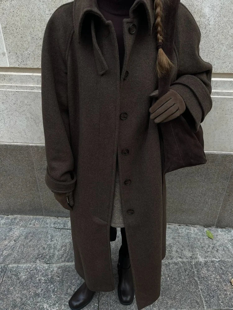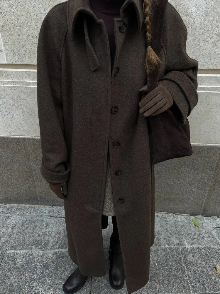 Vintage Solid Slim Women Woolen Long Overcoat Stand Collar Full Sleeve Single Breasted Coats New Fashion Autumn Winter Outerwear
