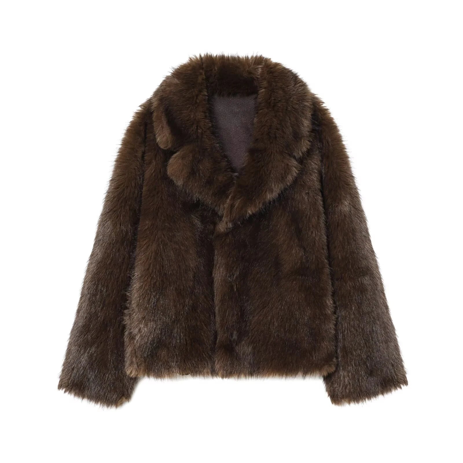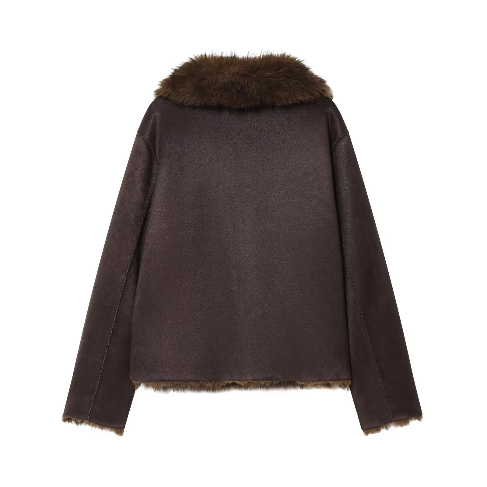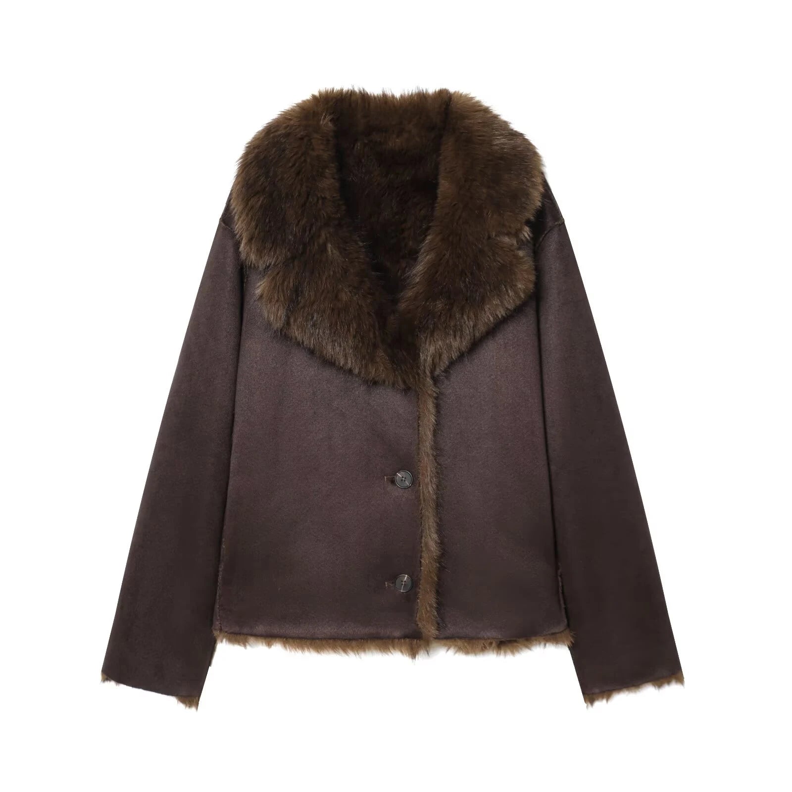 Winter new women's clothing American long sleeved lapel double-sided faux fur effect jacket jacket