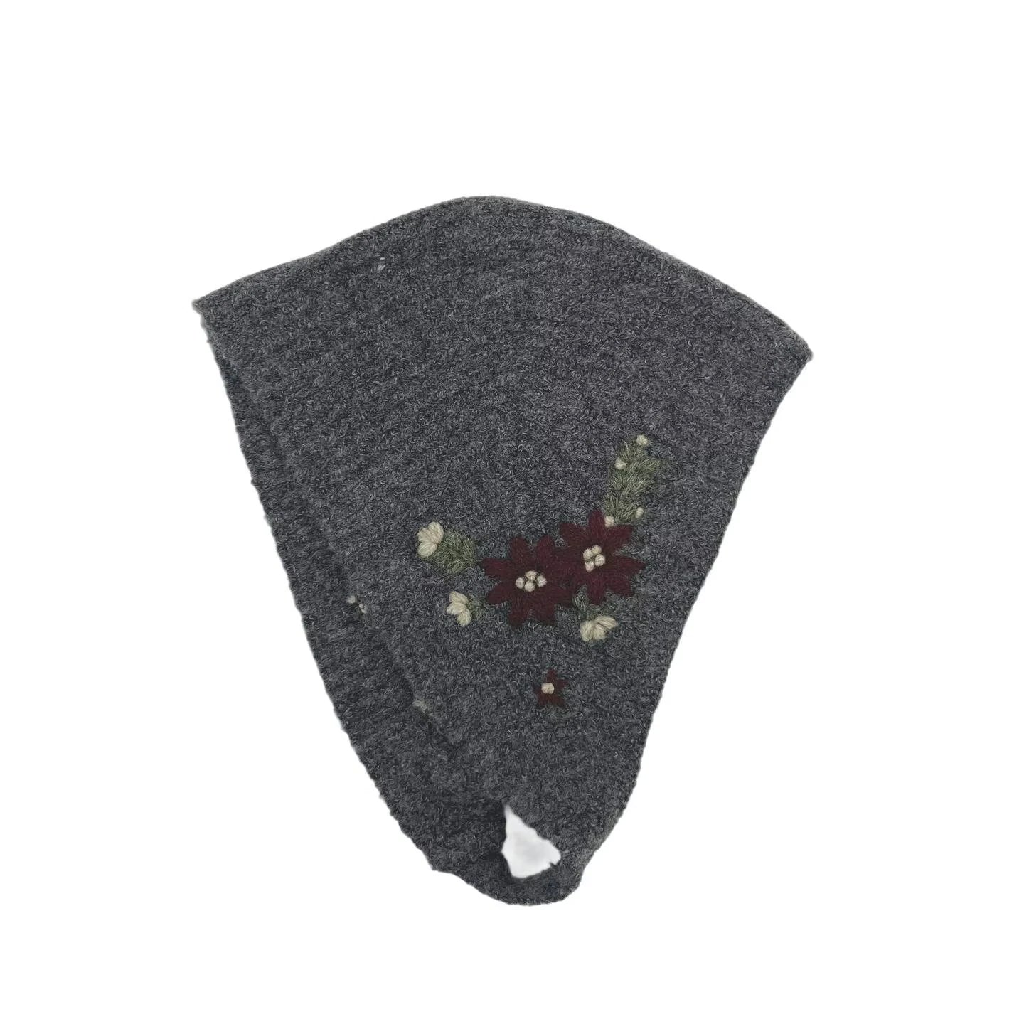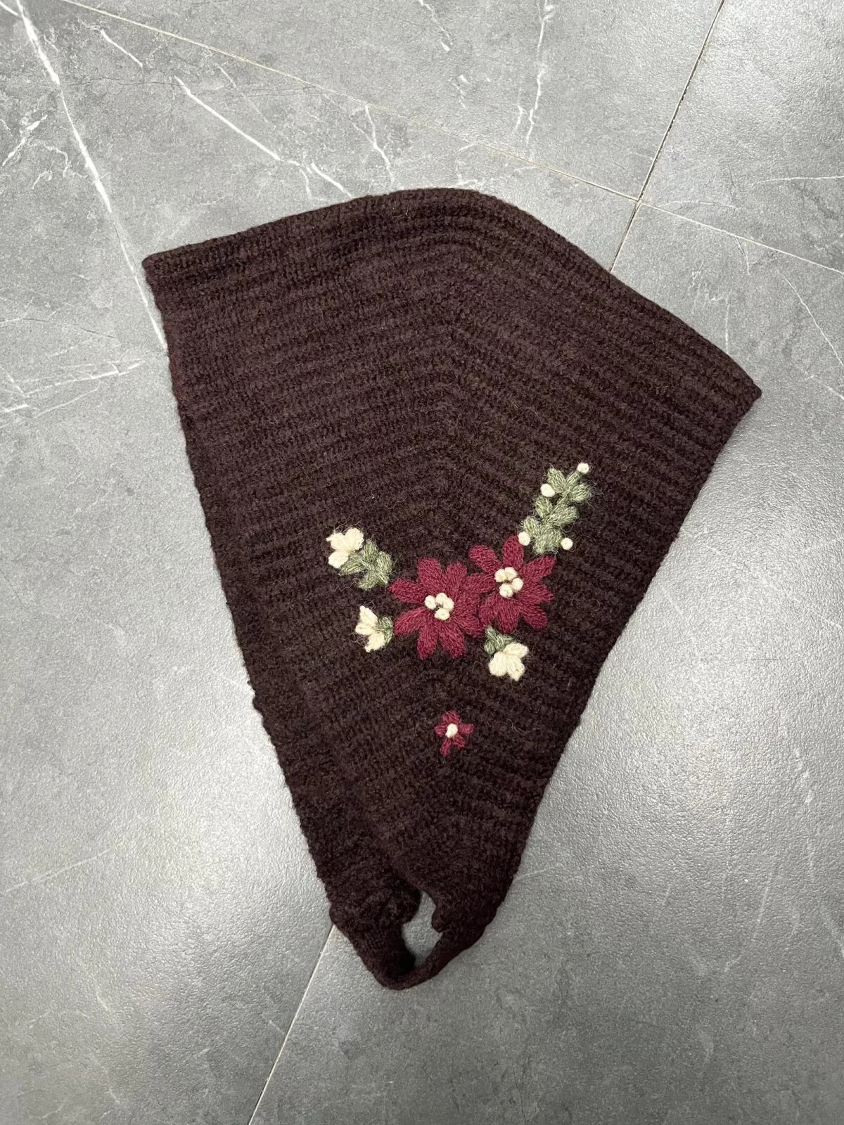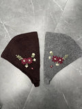 Winter new women's clothing contrasting flower embroidery knitted hat woolen hat warm ear protection hat