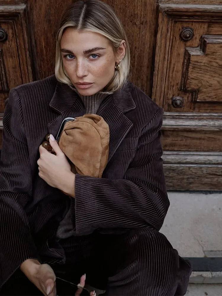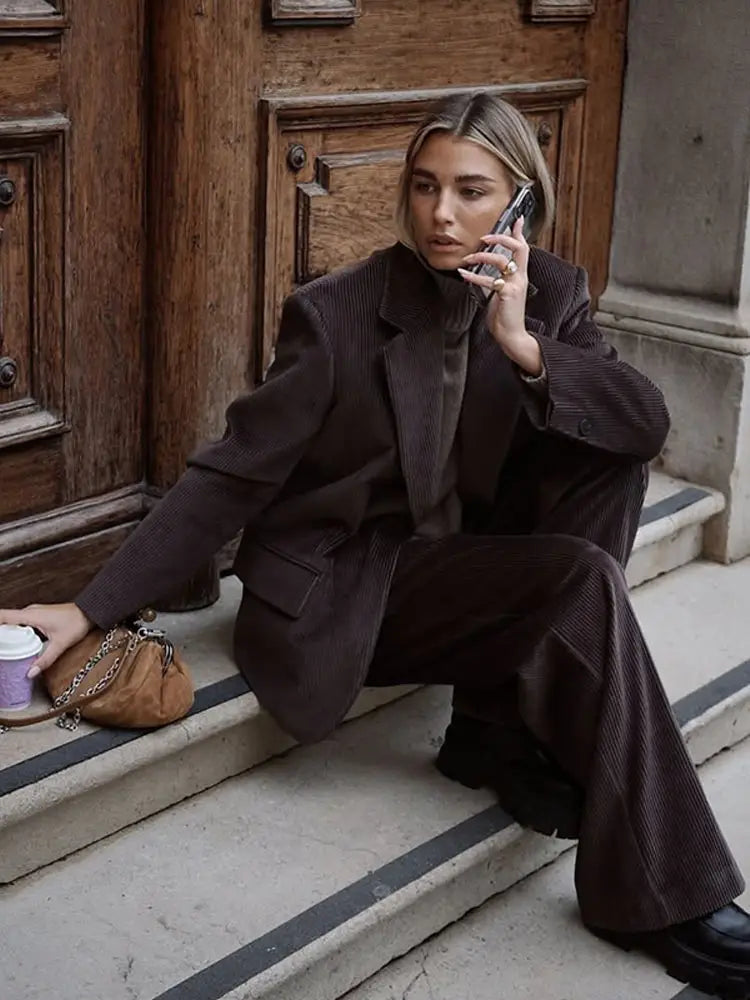 Women's 2 Pcs Suits Lapel Slim Blazer Pants Sets Early Spring Female Long Sleeve Button Coat High Waist Trousers New Lady Outfit
