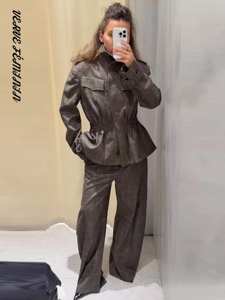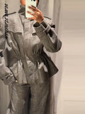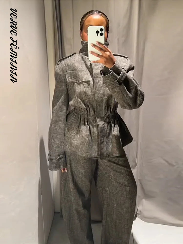 Women's 2 Pcs Suits Lapel Waist Cinching Ruffle Jackets Pants Sets Autumn 2025 Female Epaulet Slim Coats High Waist Trousers New