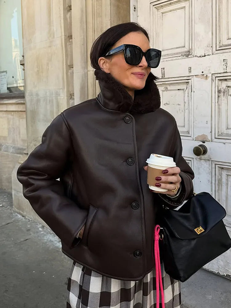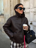 Women's Bomber Coats Reversible Faux Leather Jacket Street Female Lapel Long Sleeve Button Early Spring Coat New Lady Outerwears