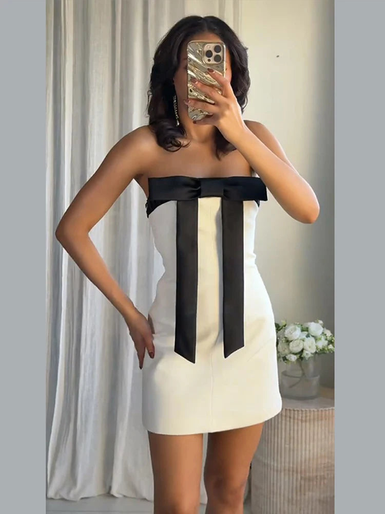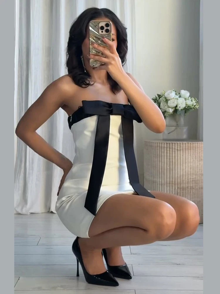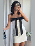 Women's Evening Dresses Bow Strapless Sleeveless Backless Slim Short Dress Panelled Waist Cinching Partywear New LadyBeachwear