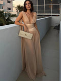 Women's Evening Dresses Deep V Satin Patchwork Mesh Long Dress New Female Ribbon Waist Cinching Party Clubwear Chic Lady Vestido