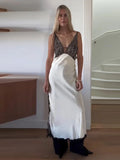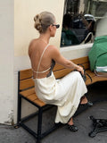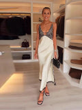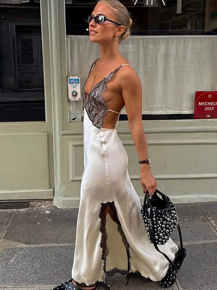 Women's Evening Dresses Lace Patchwork Satin Long Dress Sexy Female Hollow Out Sleeveless Backless Slim Partywear New Beachwear