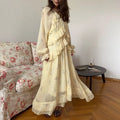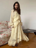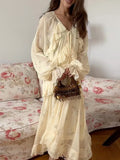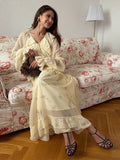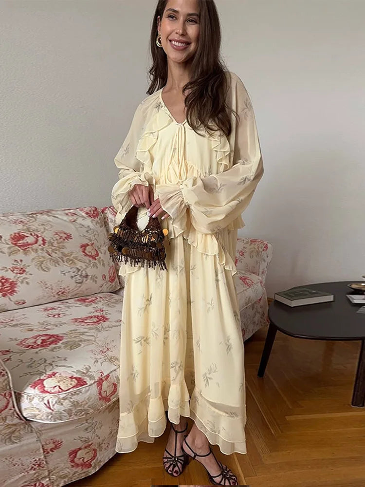Women's Evening Dresses V-neck Ruffle Full Sleeve Printer Long Dress New Female Lace Up Loose Partywear Chic Office Lady Vestido