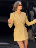 Women's Jacket V-neck Slim Blazers Autumn 2025 Female Turn-down Collar Long Sleeves Double Breasted Suit Jackets New Outerwears