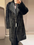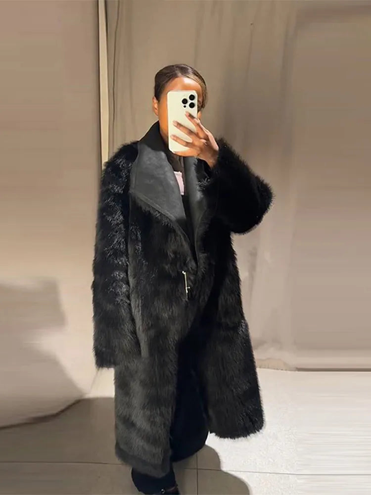 Women's Long Coats Lapel Reversible Faux Fur Coat Fashion Female Long Sleeves Loose Autumn Winter Bomber Jackets New Outerwears
