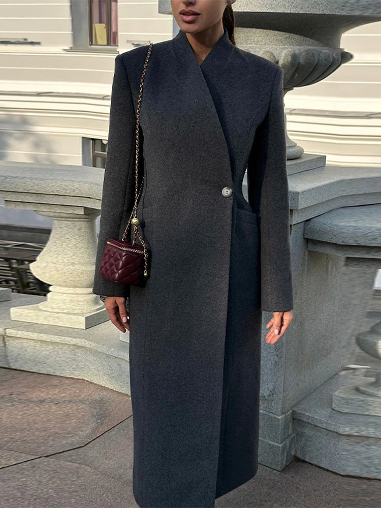 Women's Long Coats Scoop Neck Single Button Woolen Overcoats Street Female Waist Cinching Side Placket Warm Coat New Outerwears