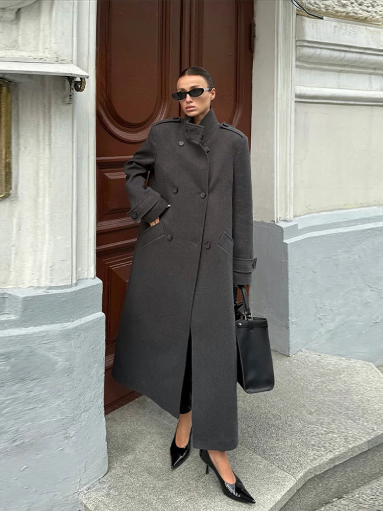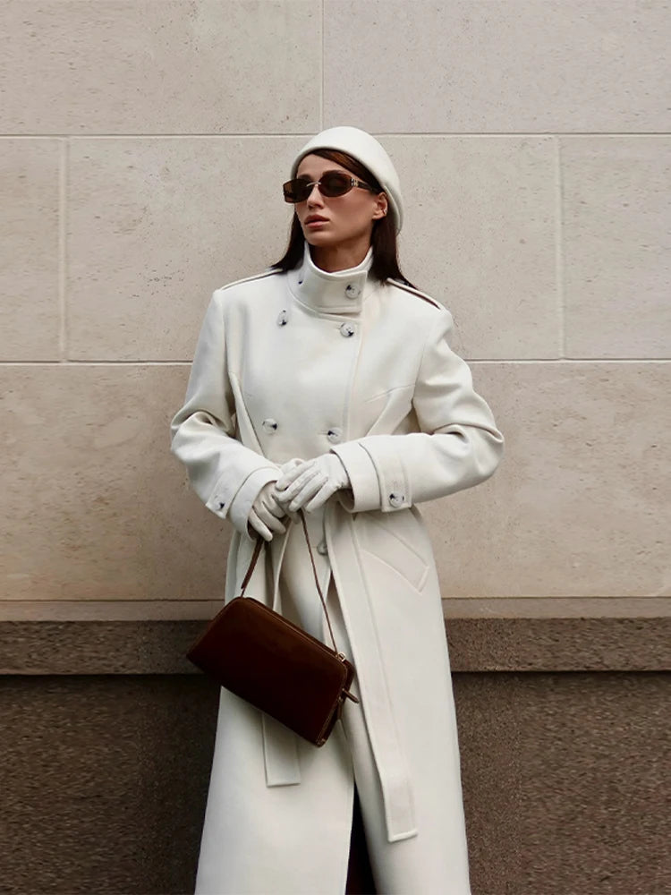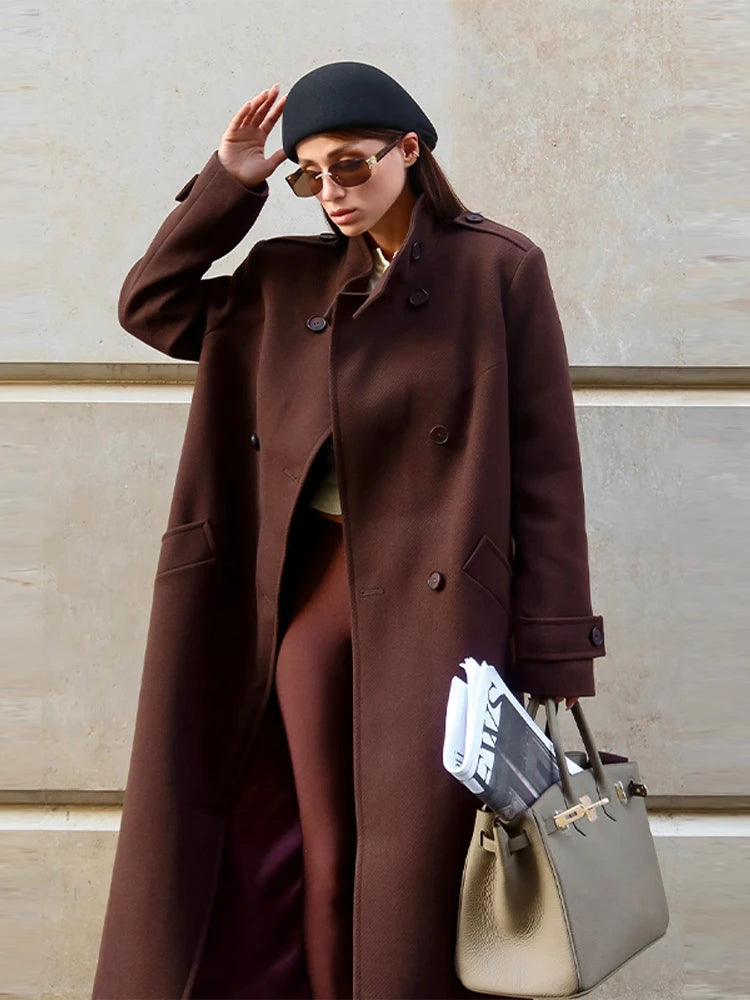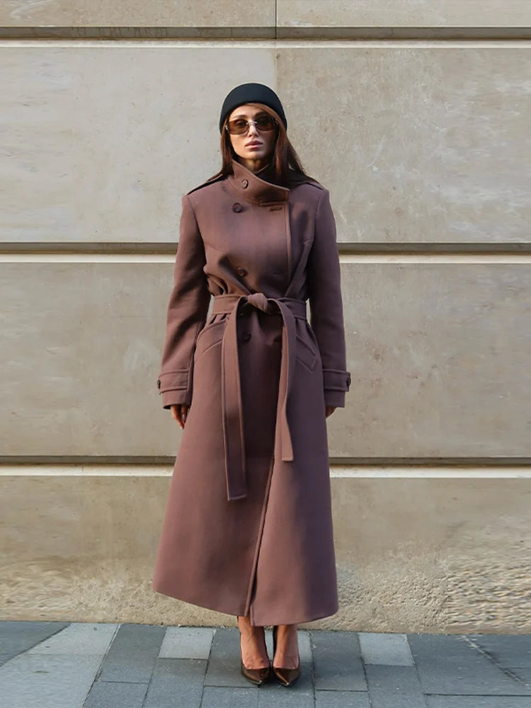 Women's Long Coats Stand Collar Lace Up Woolen Overcoat Luxury Female Double Breasted Slim Jackets Fashion Ladies New Outerwears