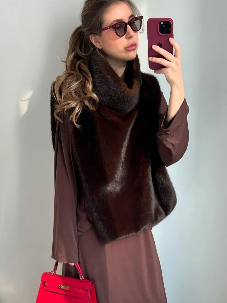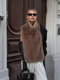 Women's Solid Faux Fur Vest Elegant Turtleneck Fluffy Short Tank Tops 2025 Autumn Winter Female Chic Sleeveless Jacket Coat New