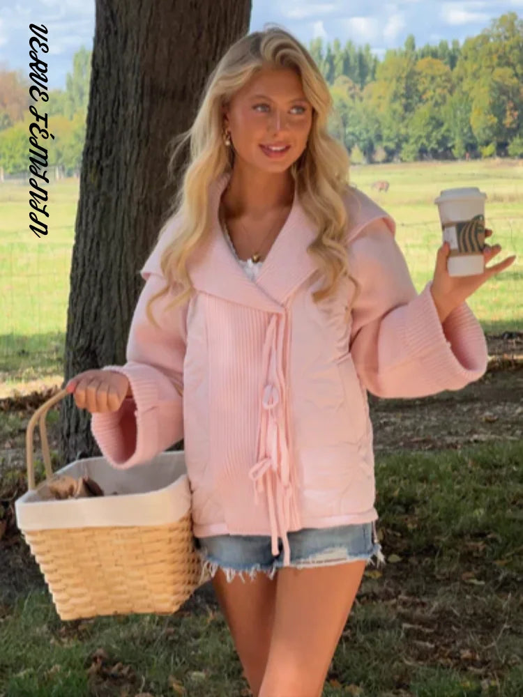 Women's Winter Coat Side Drawstring Padded Jacket Autumn 2025 Female Diagonal Placket Full Sleeve Coats Sweet Lady Outerwear New