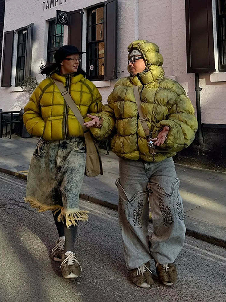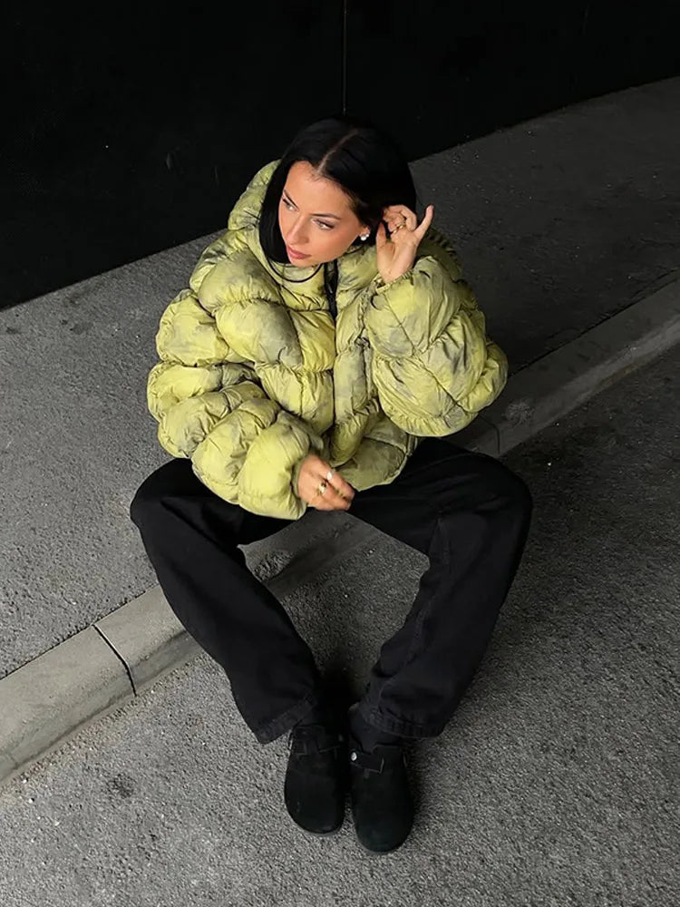 Women's Winter Coats Bright Hooded Padded Jacket Street Female Lantern Long Sleeve Loose Autumn Warm Coat New Ladies Outerwears