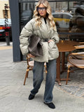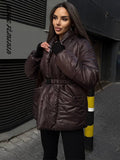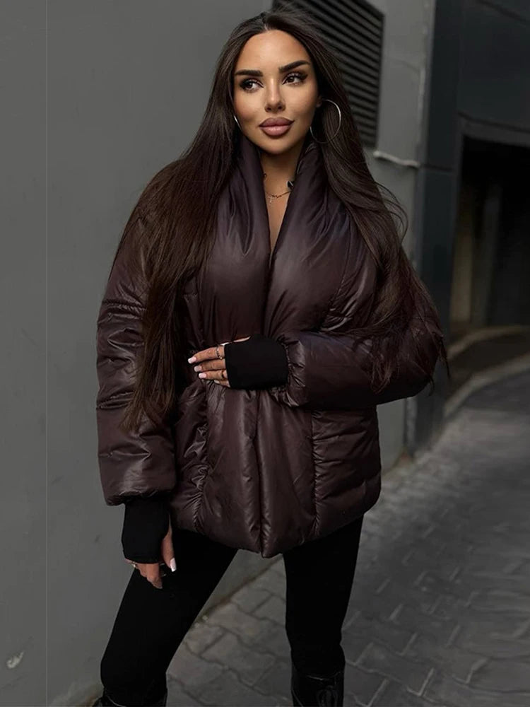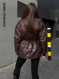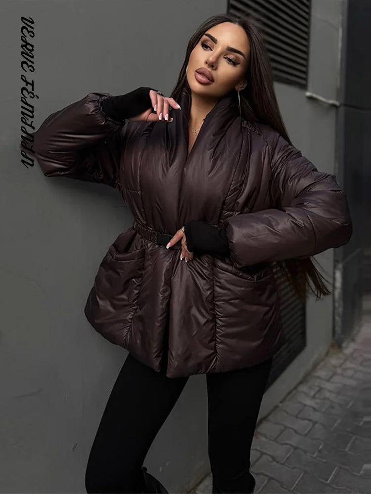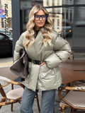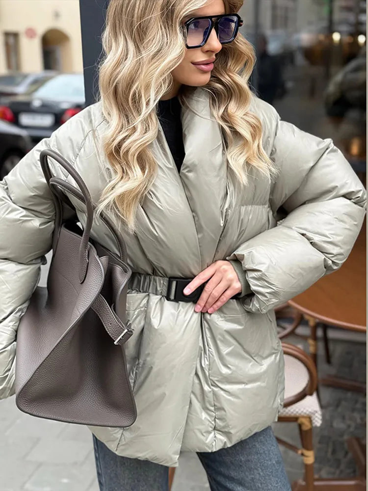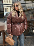 Women's Winter Coats Lapel Sashes Waist Cinching Padded Jacket Autumn 2025 Female Lantern Sleeve Slim Coat Chic Ladies Outerwear