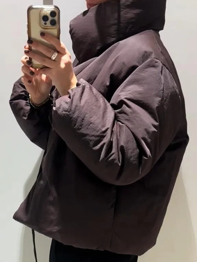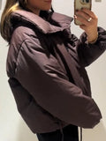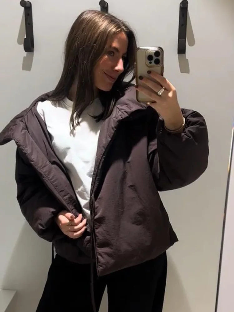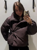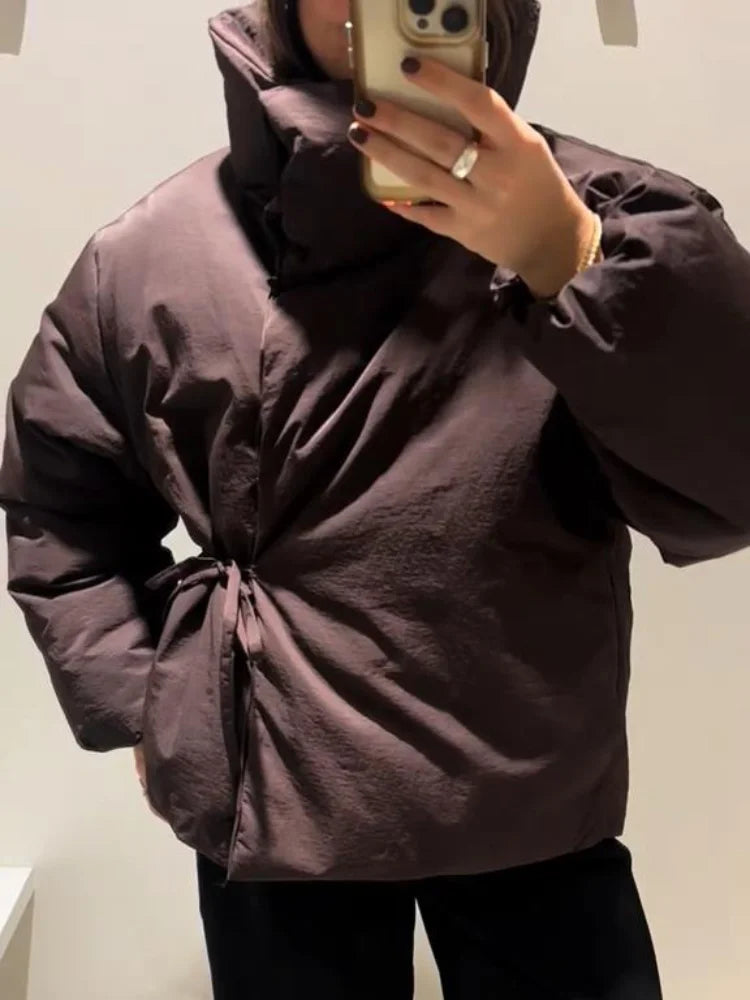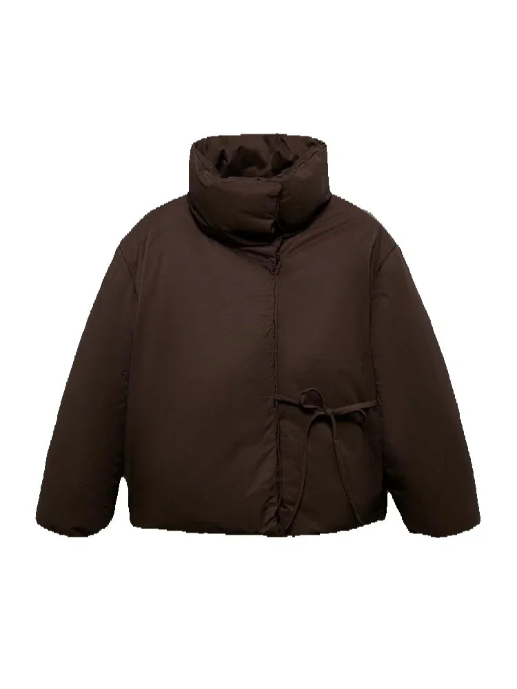 Women's Winter Coats Long Sleeve Stand Collar Zipper Lace Up Padded Jacket Autumn 2025 Female Warm Fashion Chic Ladies Outerwear