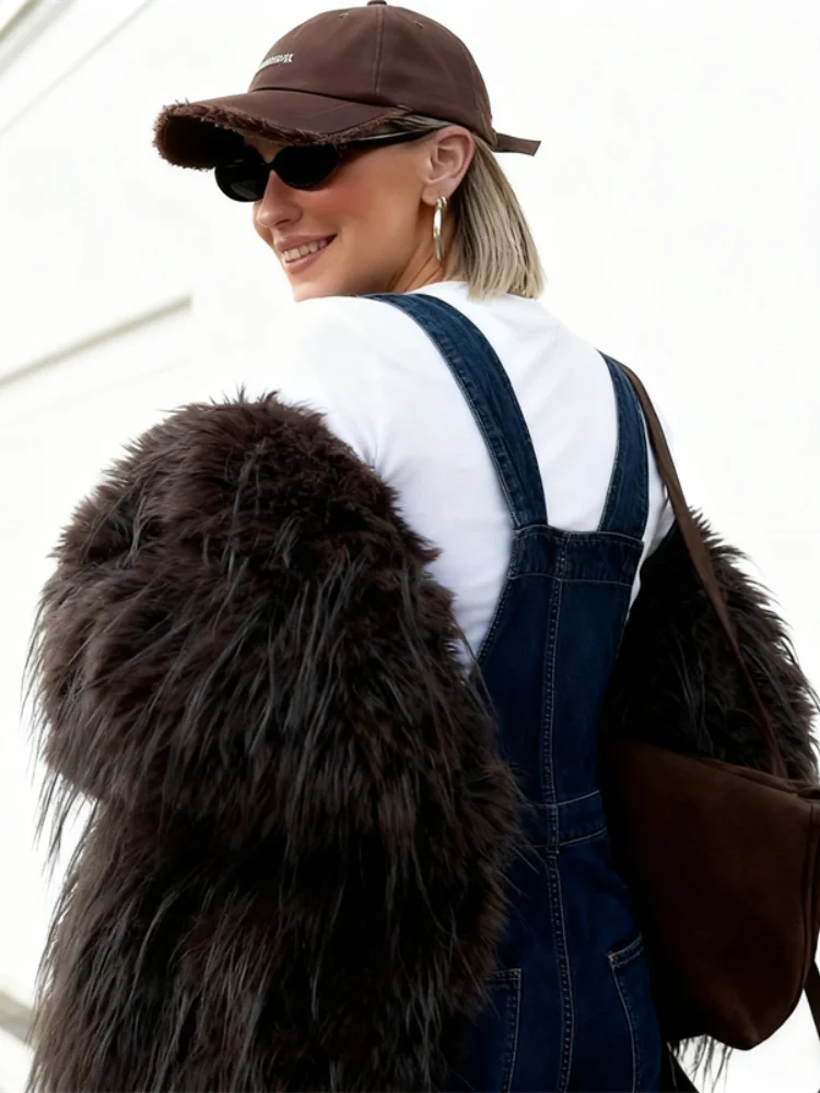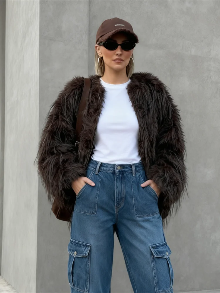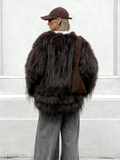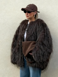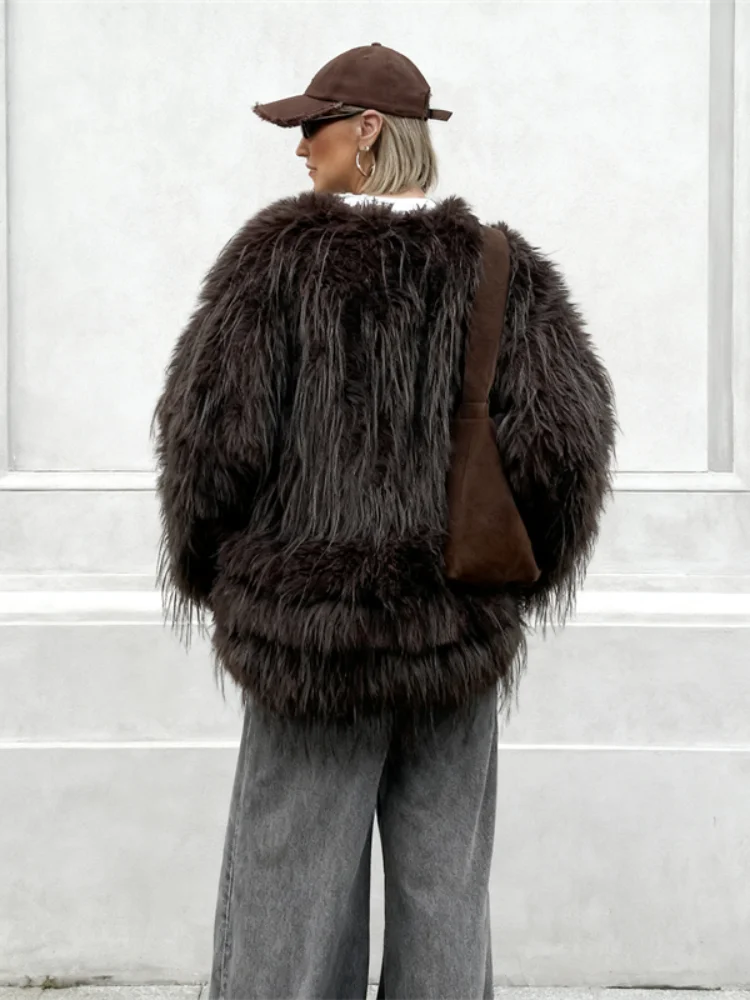 Women's Winter Coats O-neck Long Sleeve Oversized Faux Fur Coat Autumn 2025 Female Furry Loose Jackets Fashion Ladies Outerwears