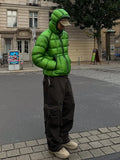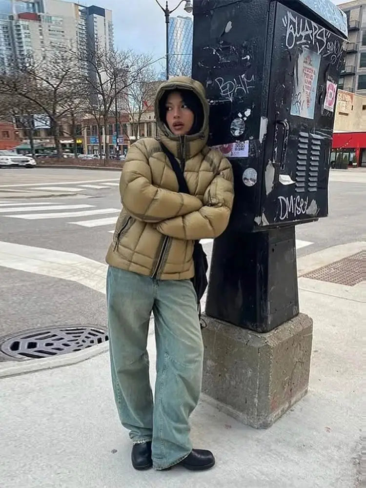 Women's Winter Coats Warm Hooded Padded Jacket Autumn 2025 Female Panelled Lantern Sleeve Zipper Pocket Loose Coat New Outerwear
