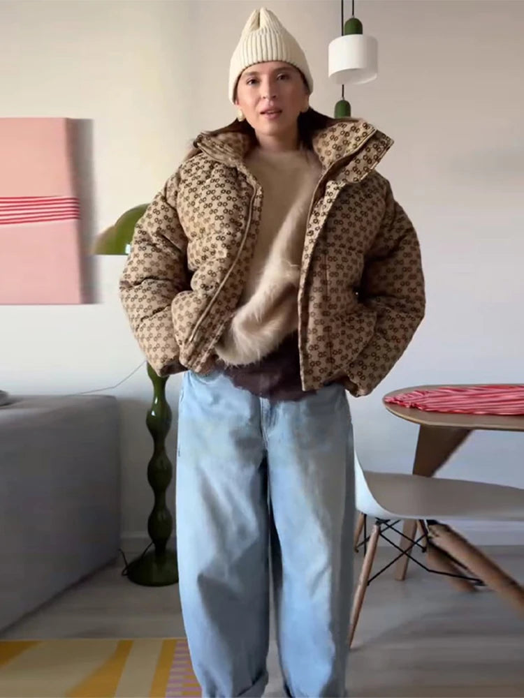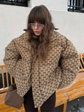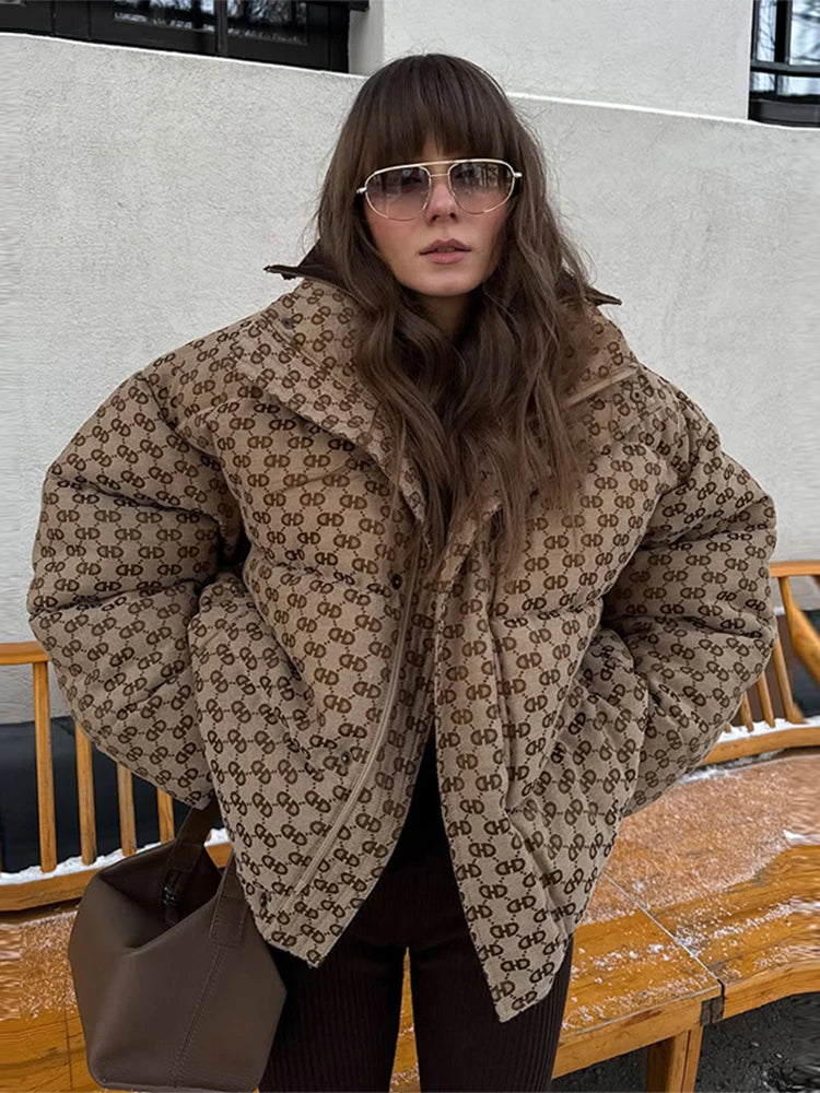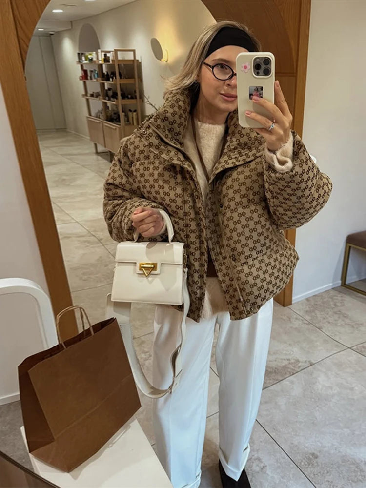 Women's Winter Down Jacket Letter Printed Padded Jackets Autumn 2025 Female Half Turtleneck Long Sleeves Loose Coats Outerwears