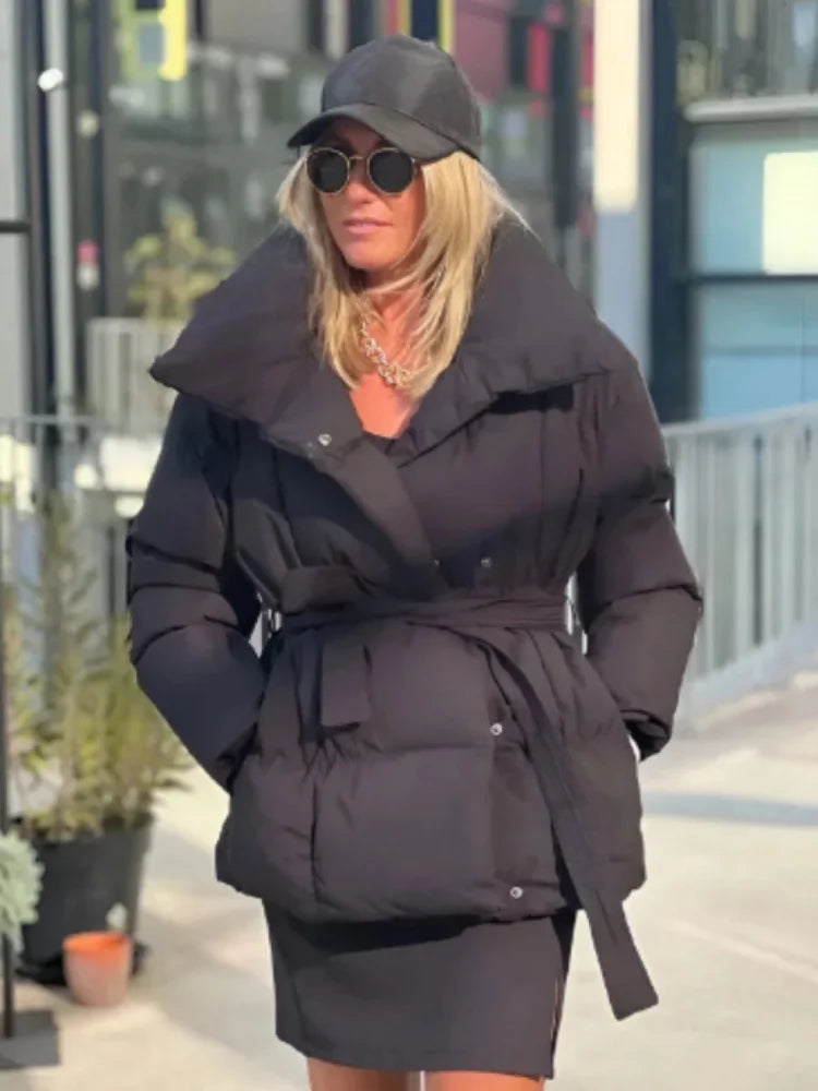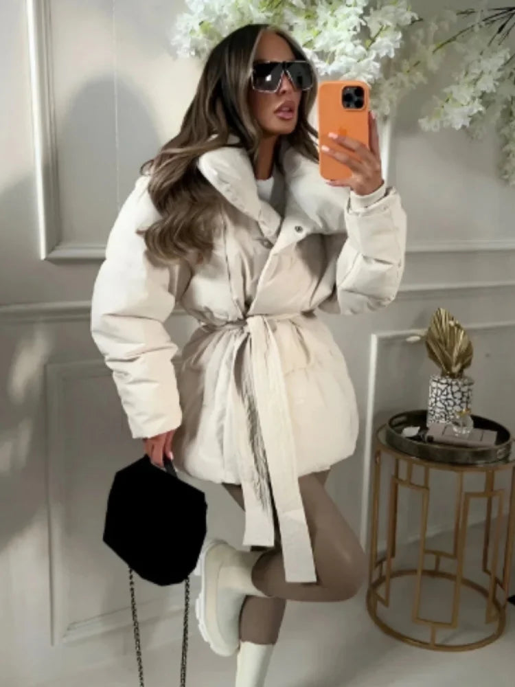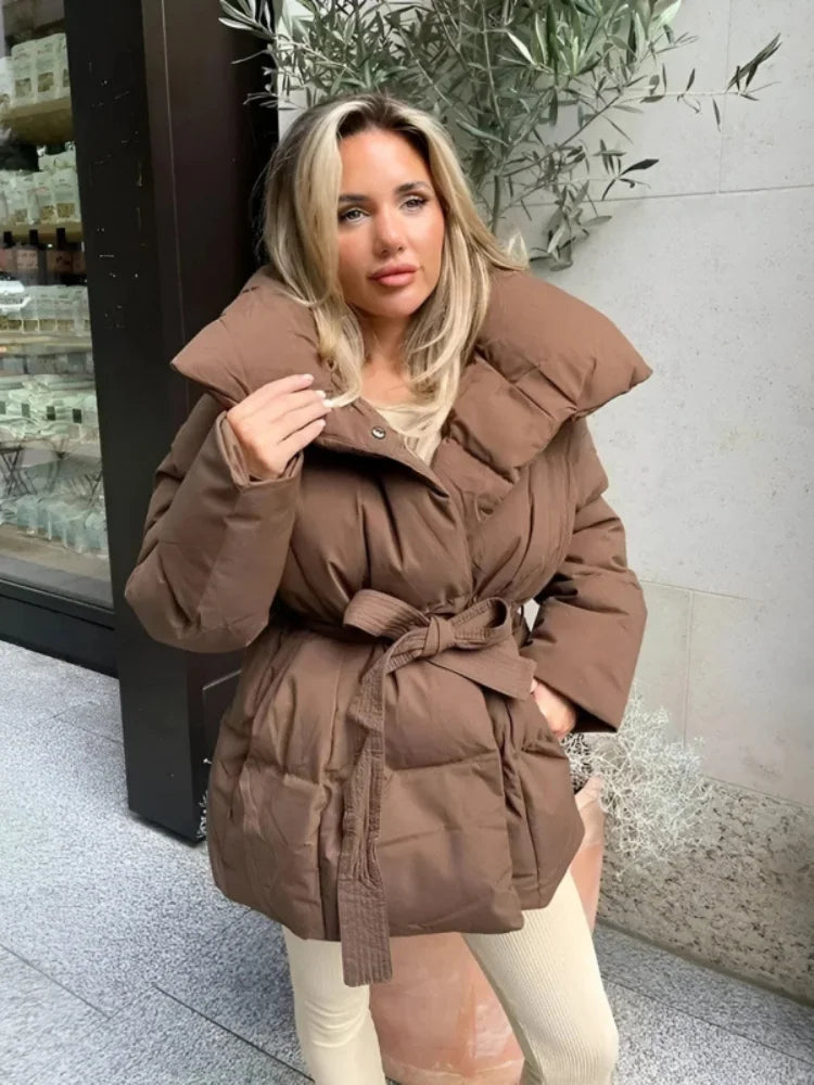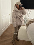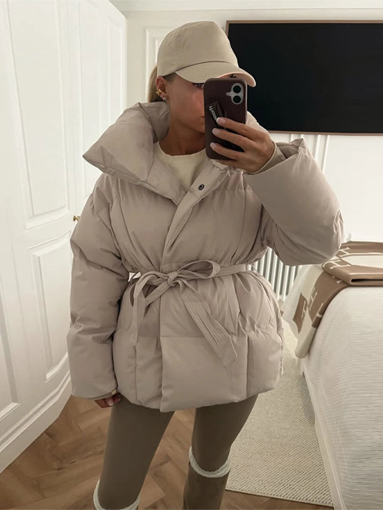 Women's Winter Down Jacket Stand Collar Waist Cinching Slim Padded Jackets Autumn 2025 Slim Warm Coats Fashion Ladies Outerwears