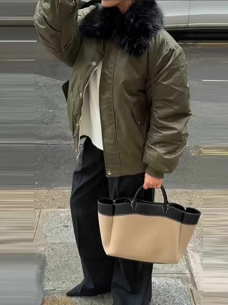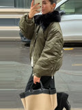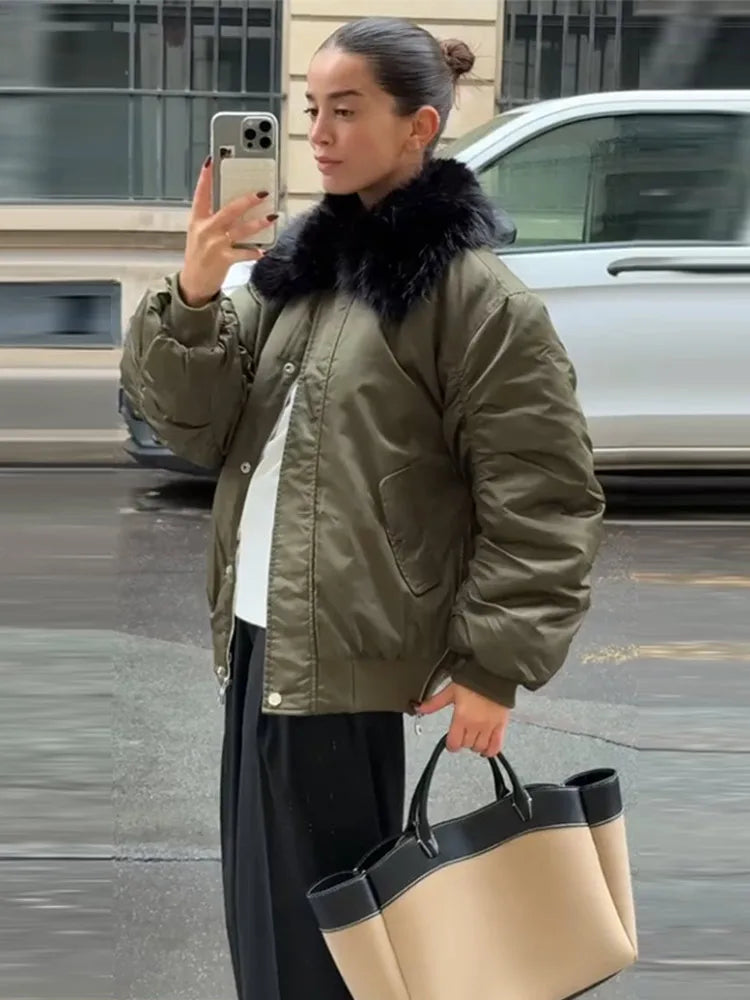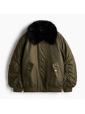 Womens's Winter Coats Faux Fur Collar Thicken Warm Bomber Jacket Casual Female Lantern Sleeves Loose Coat New Ladies Outerwears